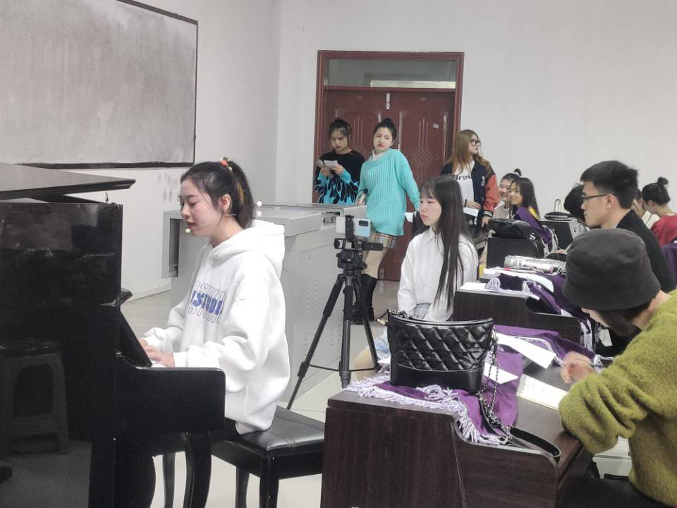 幼儿歌曲钢琴弹唱是学前教育专业学生必须具备的基本功之一,为了让学生充分展示自身的优良素质和钢琴弹奏水平,同时为学生提供互相学习,相互促进的学习平台,11月19日在这冬日里阳光明媚的上午,经济与管理学院“2020年第二届幼儿歌曲钢琴弹唱技能大赛”在S楼钢琴室如期举办,来自学前教育以及幼儿发展与健康管理专业的34位同学参加了本次比赛,音乐老师王治开、李友桃以及李赛男三位老师担任此次比赛的评委。参赛学生代表袁家佳、唐敏杰担任本次大赛主持人。