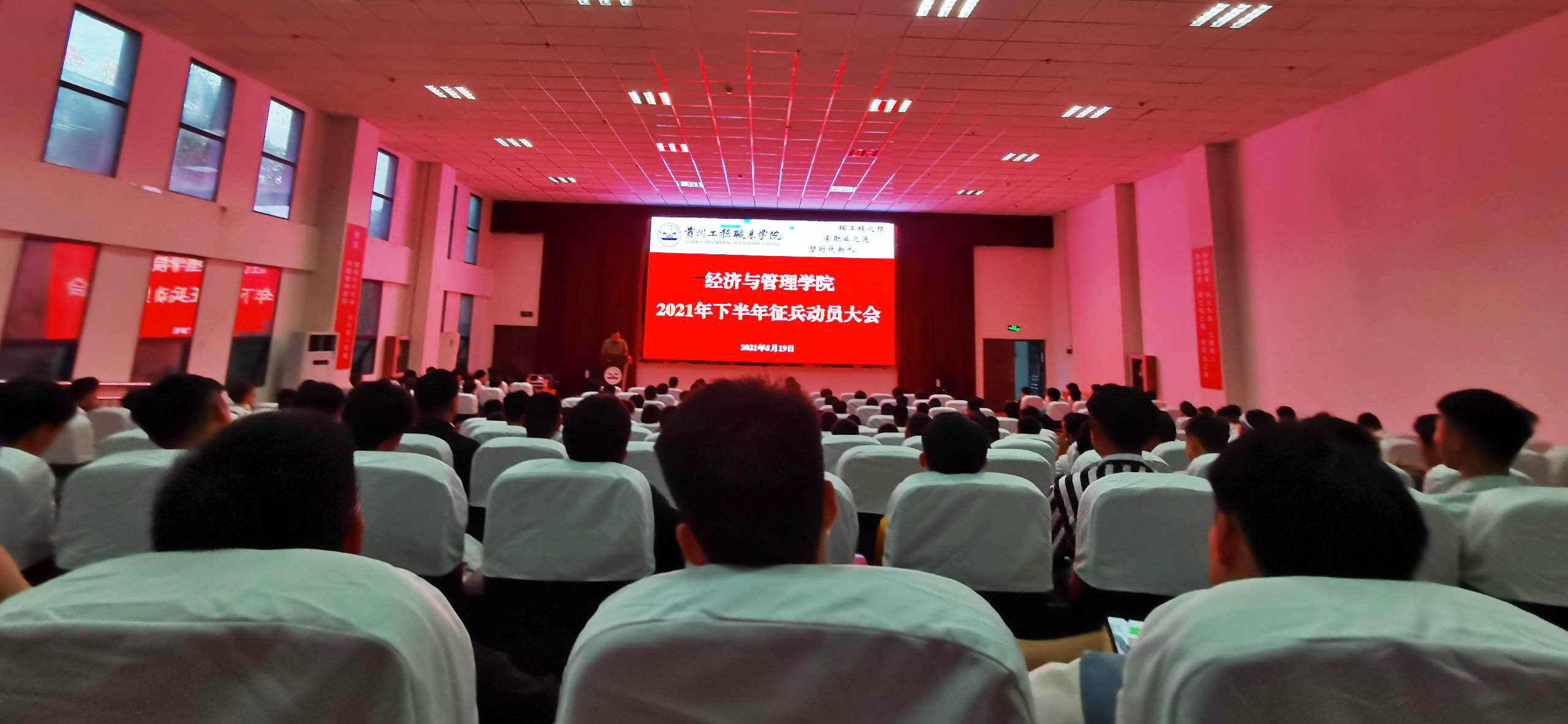 为喜迎建党百年,响应党的号召,引导有志青年积极投身军营,5月19日晚,经济与管理学院在学术报告厅召开2021年下半年征兵动员大会。经济与管理学院院长郭俊东、党支部书记包万洪、学生处副处长何夏雨、校党委武装部陈启发老师、全体辅导员及全院男生参加会议。会议由学生科徐松老师主持。
