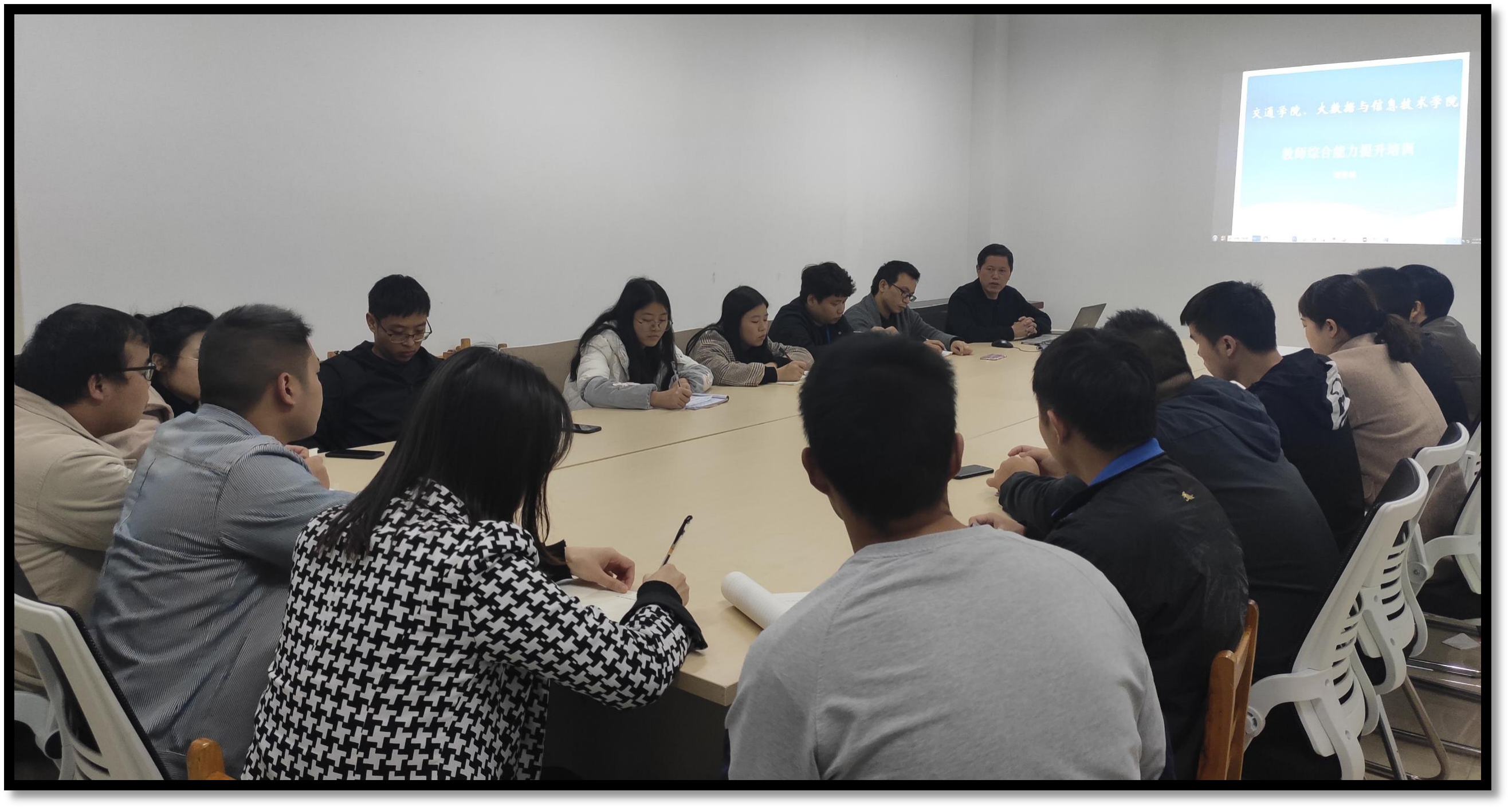 为提升学院的整体教学水平,2020年11月20日下午,大数据与信息技术学院全体专兼职教师在A栋503会议室进行了教师能力提升培训。此次培训由刘青林院长主讲,就要就信息化应用能力和高校教师应具备的基本素质进行了培训。培训内容主要有信息化应用能力和高职教师的基本素质、基本教学能力、创新能力、教改科研能力。