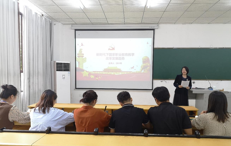 邹院长在解读“职教20条”中强调,“职业教育与普通教育是两种不同教育类型,具有同等重要地位”,教师首先要摆正过去对职业教育的偏见,才能在新的国家政策下培养出优秀的、有思想的技术技能人才,其次是邹院长从“职教二十条”中的方案整体架构、整体目标要求出发深入解读了职教20条的具体改革措施:一个体系,三项制度,四项标准,四个体制,二项政策,四个试点,五项活动,一批项目。要求新教师在教育教学过程中要切实做到坚持知行合一、工学结合,推动校企深度合作,促进产教融合校企“双元”育人,针对国家职业教育推动1+X证书制度的试点工作。同时邹院长指出,学校在人才培养的过程中要夯实学生可持续发展基础,鼓励学生积极取得多类职业技能登记证书,从而拓展学生就业创业的本领。